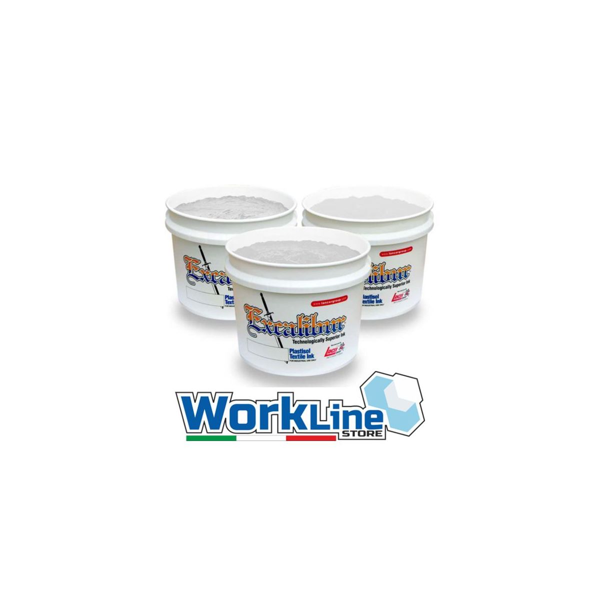 Inchiostro Plastisol Excalibur Target WhiteL'inchiostro Plastisol Target White è un bianco economico brillante per stampare su materiale 100% cotone. Aspetto chiaro, può essere utilizzato anche come bianco base. Target white è la migliore scelta per stampe a basso costo.