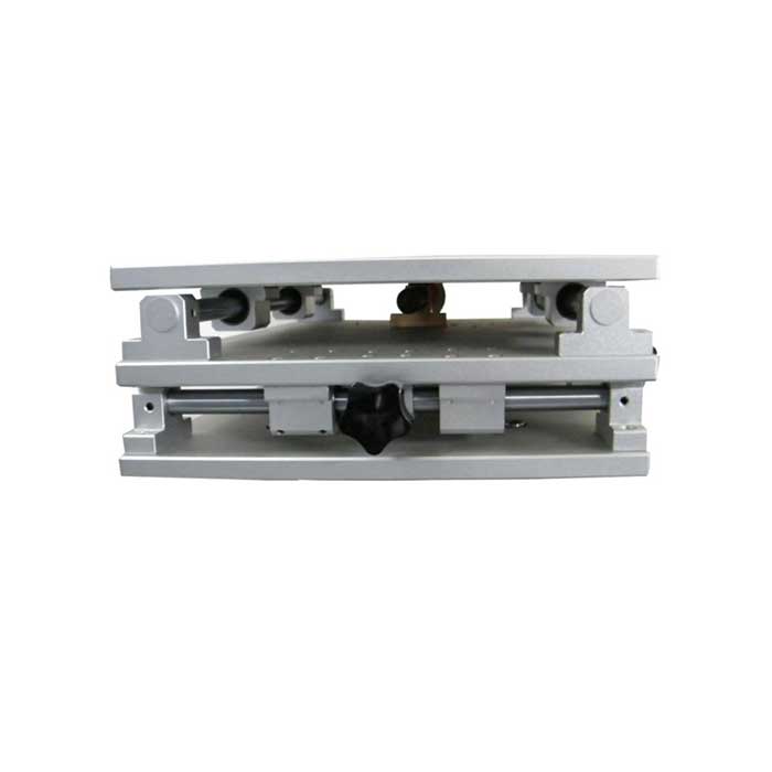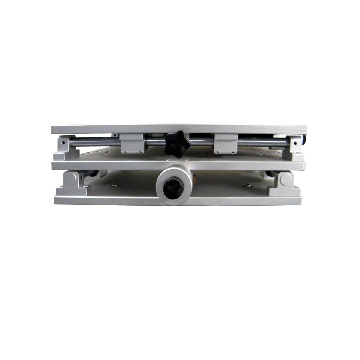 Piano regolabile sugli assi X e Y dotato di microregolazioni, righello e sistema di fissaggio dei pezzi. Ideale per la messa a registro del pezzo sul piano di lavoro.