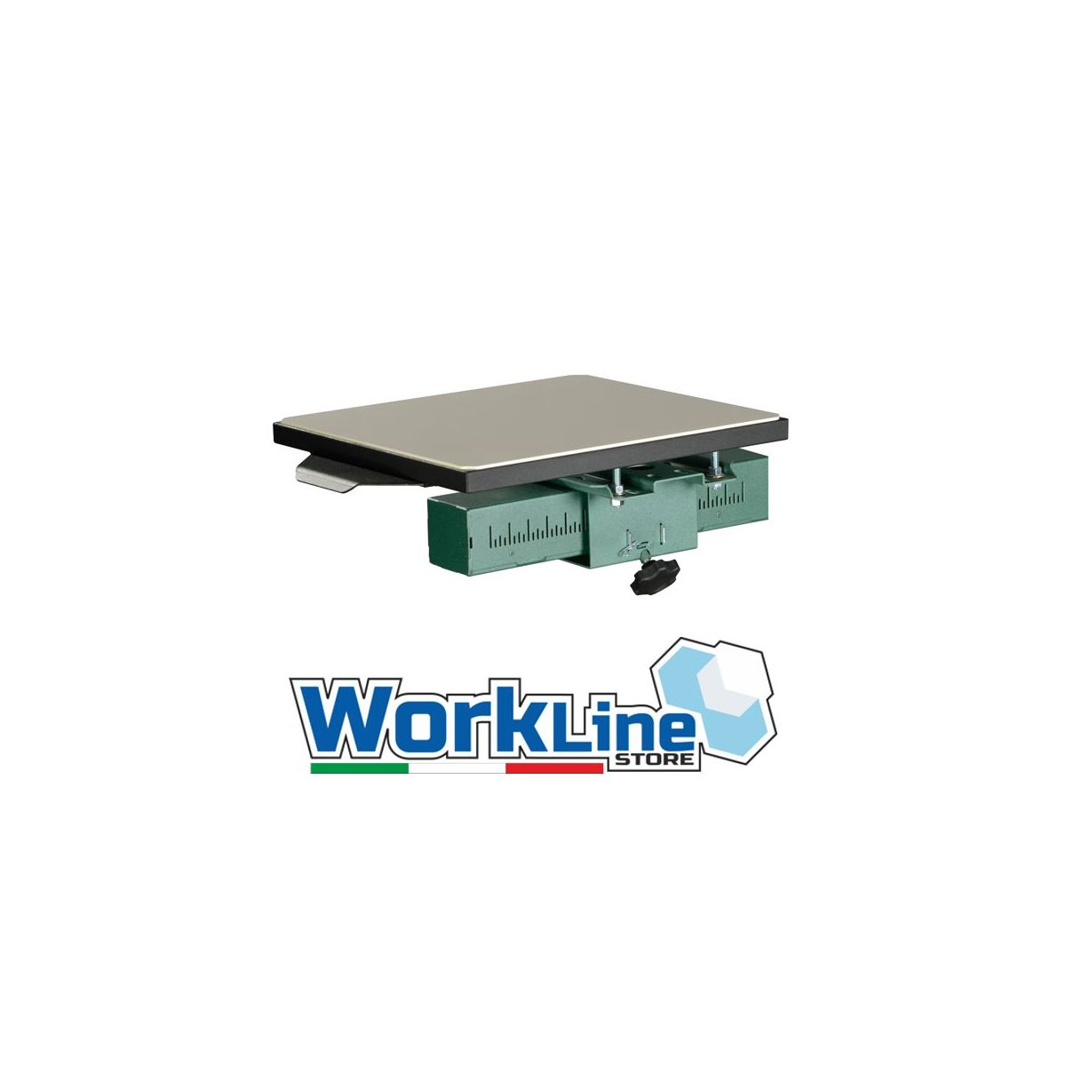 Banco serigrafico desktop un colore con microregolazioni e piano in metallo. Particolarmente adatto per la stampa di borse shopper, calendari e altri oggetti piani.