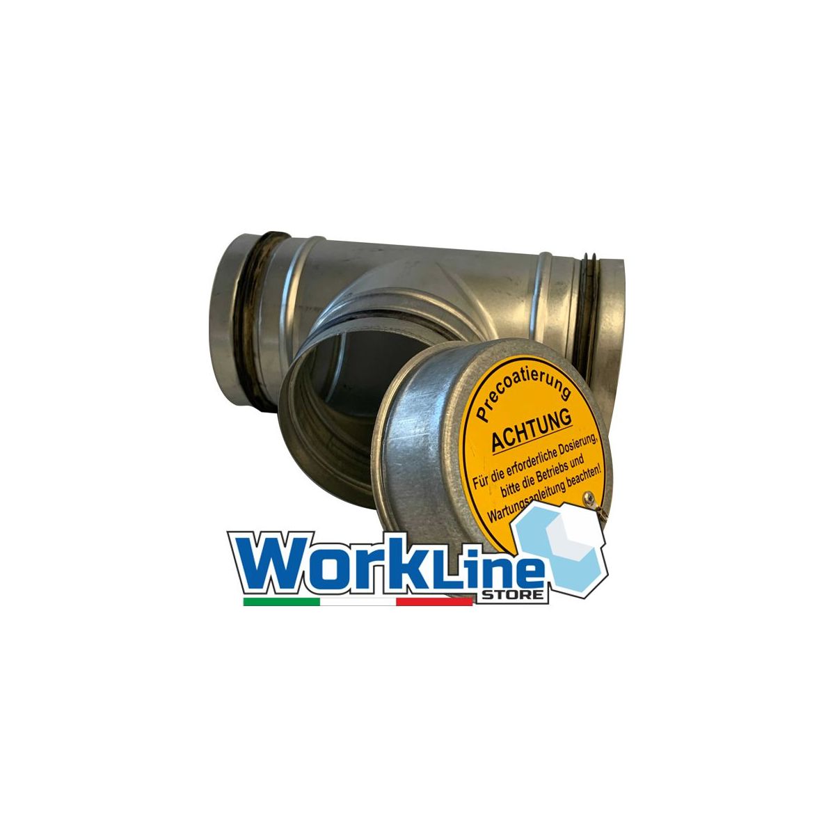 Raccordo DN100 a T con Tappo di Chiusura Raccordo in metallo a T con guarnizioni e tappo di chiusura, indicato per prefiltri serie FVP o per giuntare due tubi assieme. Made in Germany. Idoneo per collegare tubi flessibili diametro 100mm.