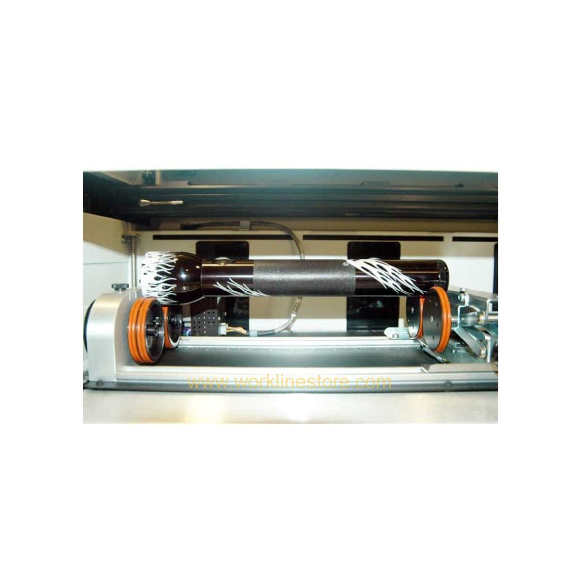 Rotary per macchine laser CO2 WL dotate di motori NEMA23.Studiato appositamente per la lavorazione su oggetti tondi a 360° Dotato di 4 accessori per poter fissare ogni tipo di oggetto, dall'interno verso l'esterno e viceversa.